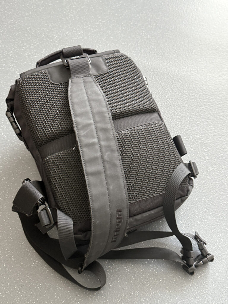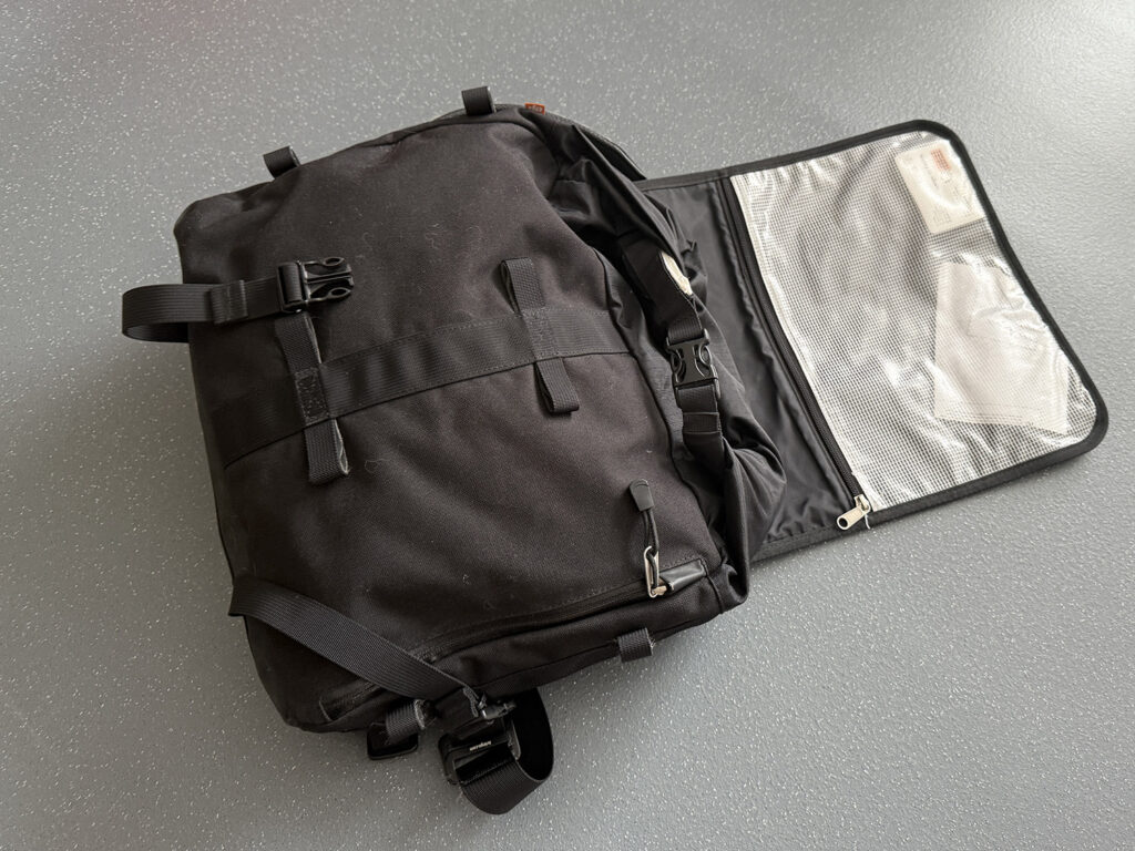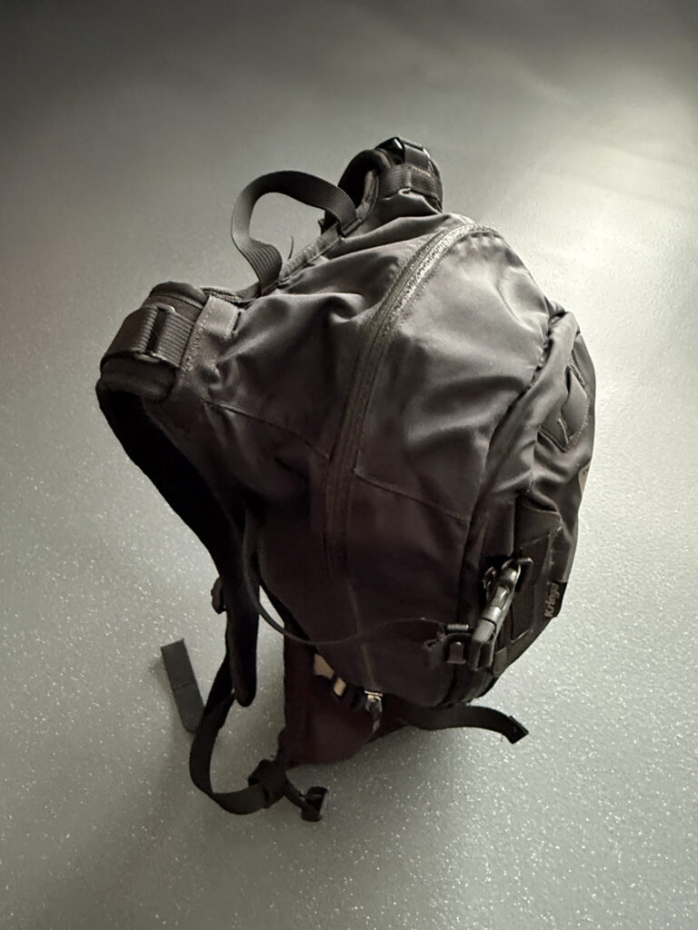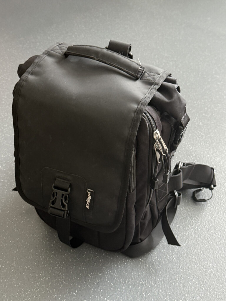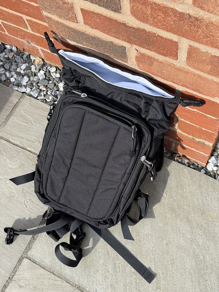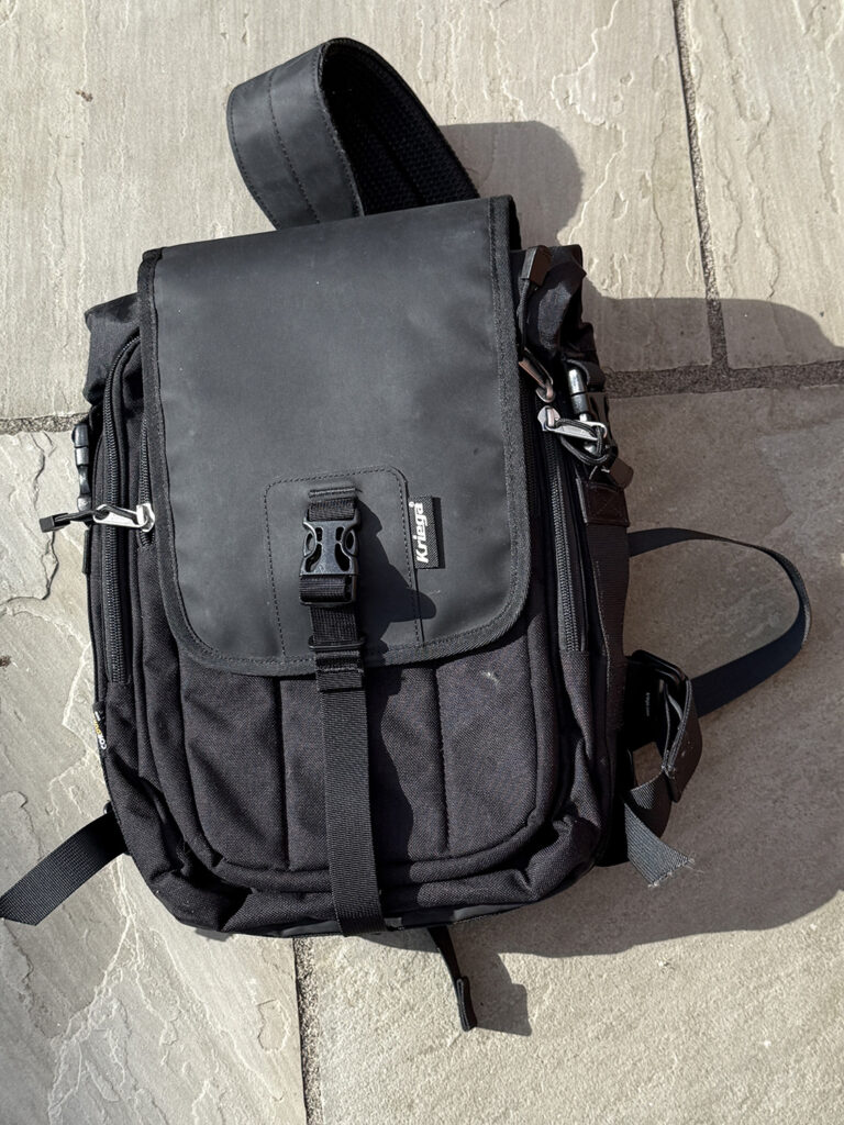 Some observations: the pad on the shoulder strap although long, could do with some adjustment when walking around fully-laden as it can dig in after a while, and the really useful compartment on the side has a zip opening which sometimes catches the lining when closed in a haphazard manner but I’m informed Kriega have long since modified the design so this no longer happens.