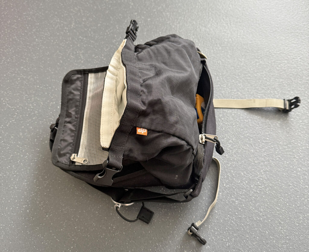 Kriega call it a waist pack, but it’s also known as a bum bag or fanny pack in the USA. Whatever it may be classed as, it, like much in the Kriega range, is a robust and dependable piece of kit. Worn around the waist, the R3 has a capacity of 3 litres in the main waterproof compartment. This section is fastened via a roll top buckle system and is covered with a twin buckle flap. Inside the R3 are two more zip compartments – one in the flap interior and one outside the main section, perfect for keys, ear plugs and coins. It uses Kriega’s excellent belt adjuster on both sides so you can simply pull to tighten or pull in the other direction to loosen. The removable inner compartment is big enough to swallow a DSLR camera with wide-angle lens and a few batteries, along with a wallet. I originally got this in 2008, when the price was just £45 and while 17 years later the entry price may have almost doubled but the quality remains the same. Despite regular use my R3 still looks and feels like new. Criticisms are few – there are times when I’d like just a bit more capacity, and when it’s bulging with so much stuff rammed inside its gob it eats into the space used by the outside pocket. But that’s when you realise you should’ve taken a backpack, speaking of which…