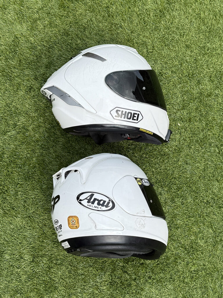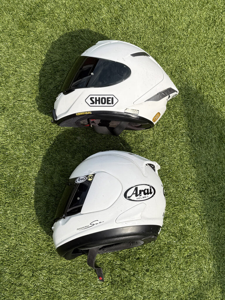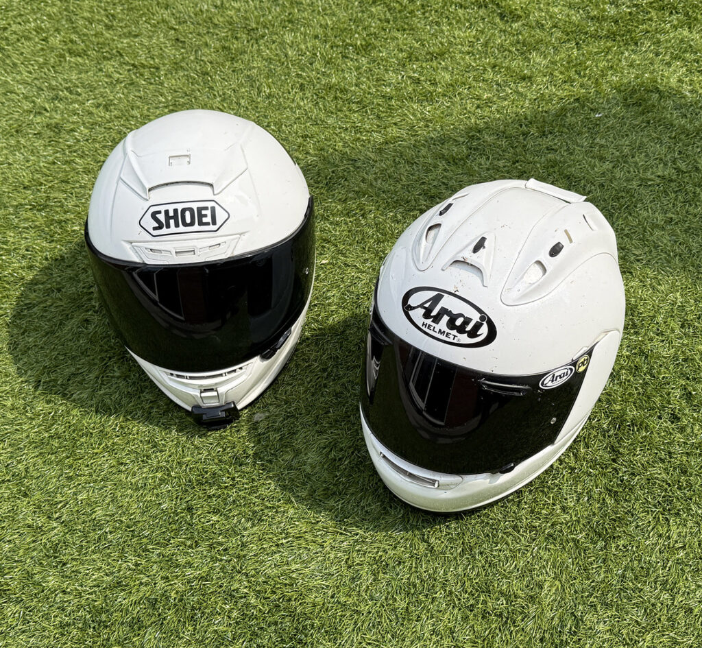 Thousands of miles on road and track for two premium race helmets, but how do they compare?