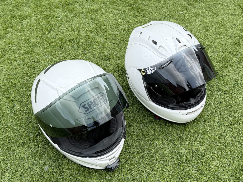 It’s often said you have either a Shoei or an Aria-shaped head, but after owning multiple examples of both brands I have to declare that that is complete guff. I’ve had both these two helmets for around ten years and I’ve probably done around 30,000 miles between them, with a mix of commuting, touring and trackdays. A lot of trackdays. They’re still in occasional use despite their age, and you can still get the X-Spirit new, so here are my thoughts on these two premium lids.